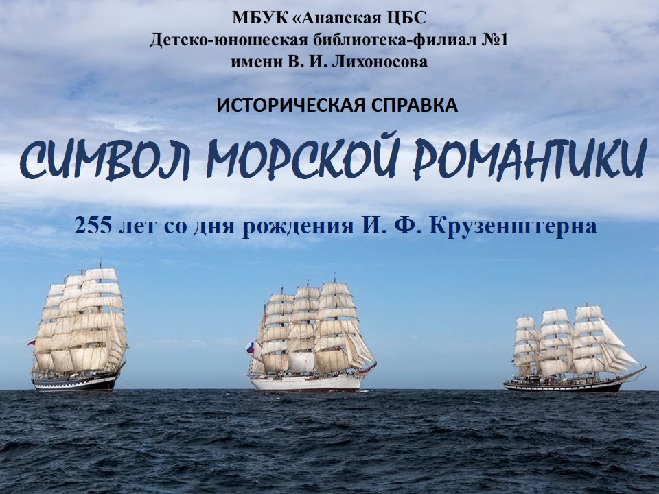 В ноябре 2025 года исполнилось 255 лет со дня рождения выдающегося русского военного и научного деятеля Ивана Фёдоровича Крузенштерна. Предлагаем вам познакомиться с исторической справкой «Символ морской романтики» с краткими сведениями о его вкладе в русскую историю и науку. | |